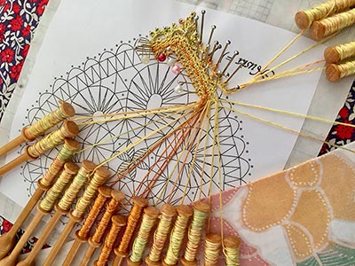 Zaterdag ga ik demonstreren op de Handwerkbeurs in Zwolle. We zitten op dezelfde plek als vorig jaar. Daar was het licht niet optimaal. Geen goed idee dus om de rozen mee te nemen. Bovndien zitten die op een redelijk groot kussen. Van Astrid heb ik een mooi klein kussentje gekregen. Hierop een hart in Russisch bandkant opgezet. Dat moet beter lukken.Er is alleen iets met het kussen. Op een bepaalde plek, net bij het begin van het hart kan je de spelden er bijna niet in krijgen. Er zit iets hards in. Ik ben er nog niet achter wat.