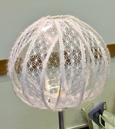 De workshop, genaamd Experimenteer Kantje, was gebaseerd op een bolvormig lampje van papier. Dit werd door Liesbeth en Tine in kant omgezet. In de bandjes kan met slagen en garens geëxperimenteerd worden.